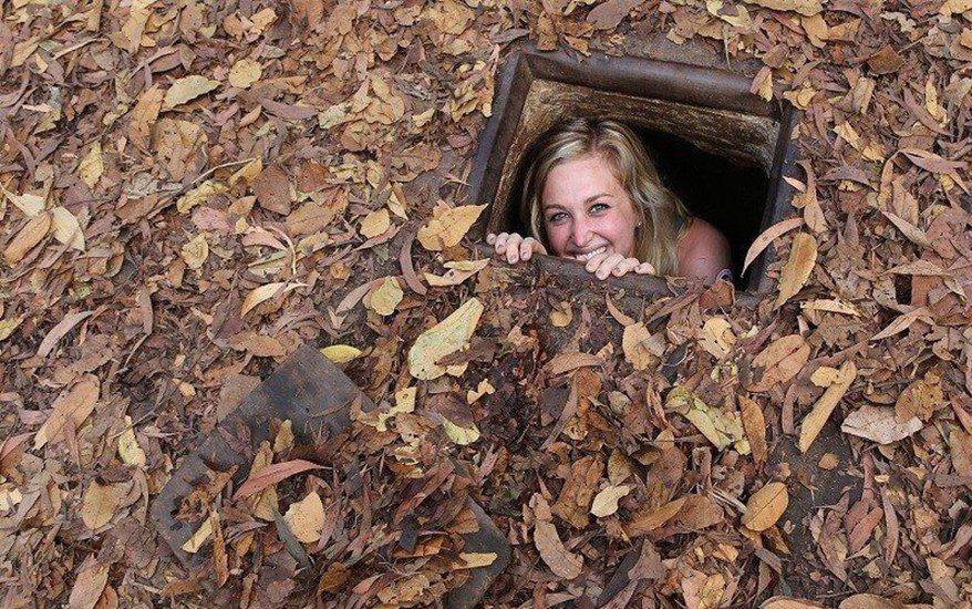 Arriving at the destination, a short introductory video showing how the tunnels were constructed and used by Viet Cong soldiers during Vietnam War will be given. Then we will spend time to explore the maze of tunnels with countless trap doors, storage facilities, weapons factories, field hospitals, command centers, kitchens, and more. Besides, we will enjoy the most popular food during war days at Cu Chi tunnels – the cassava.