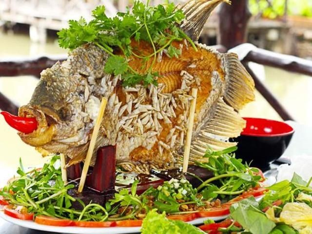 Have lunch at local riverside restaurant with special food as: Elephant-ears Fish, Deep Fried Spring Rolls, Vietnamese pan-cake….
